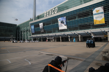 ‘16. 3. 17. 16:00경 해운대구 우동 벡스코에서 부산경찰청, 부산시, 소방안전본부, 제53사단, 제5공중기동비행단, 국가정보원 부산지부 등 8개 기관 400여명이 한 자리에 모여 대테러 종합훈련을 실시했다.