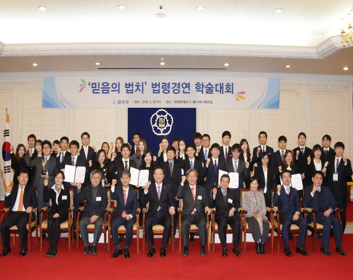 법무부는 2016. 2. 24.(수) 10:00~17:10 정부과천청사 3?4동 대회의실에서 전국 대학생 및 법학전문대학원생을 대상으로 ‘믿음의 법치’ 법령경연 학술대회 본선과 시상식을 개최했다.