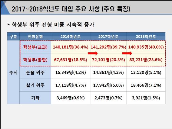 대학 입시가 수시 전형 비중이 높아지는 가운데 학생부 위주의 전형도 지속적으로 증가하고 있다. 이에 따라 일선 고등학교의 학생부에 대한 대응도 중요해지고 있다.