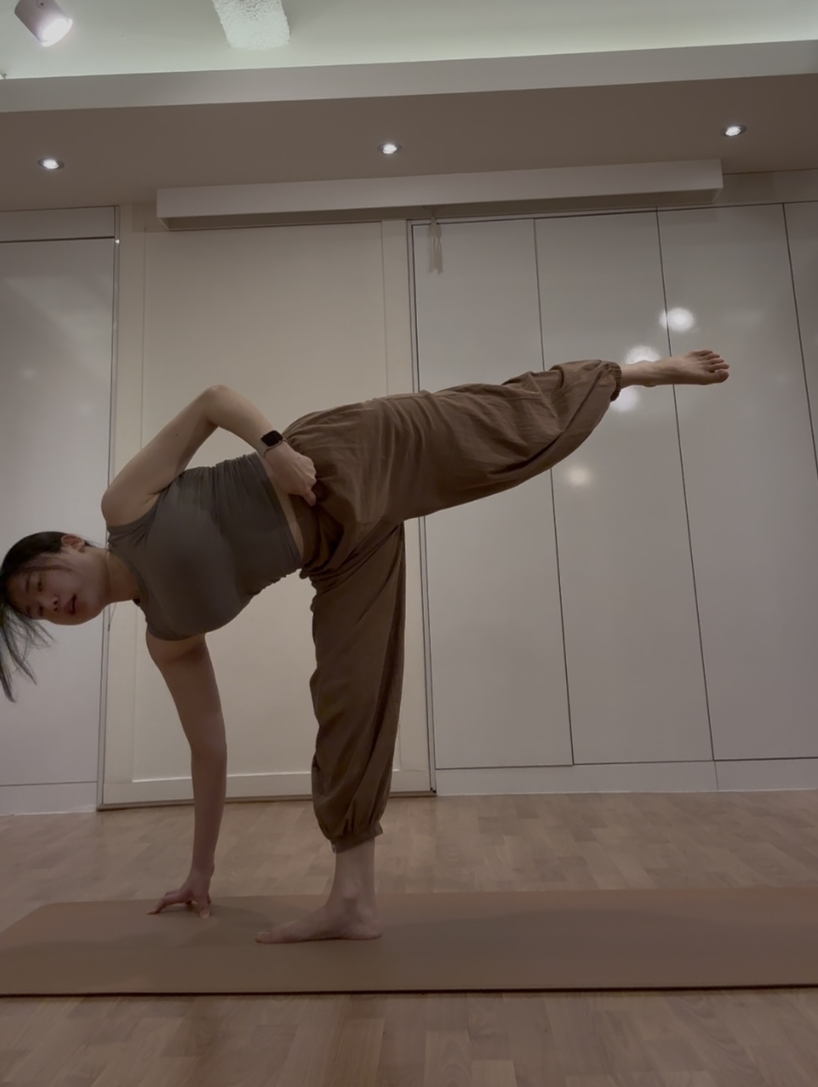 지금 하고 있는 자세는 ''트리코나아사나''라고 하는 삼각자세입니다